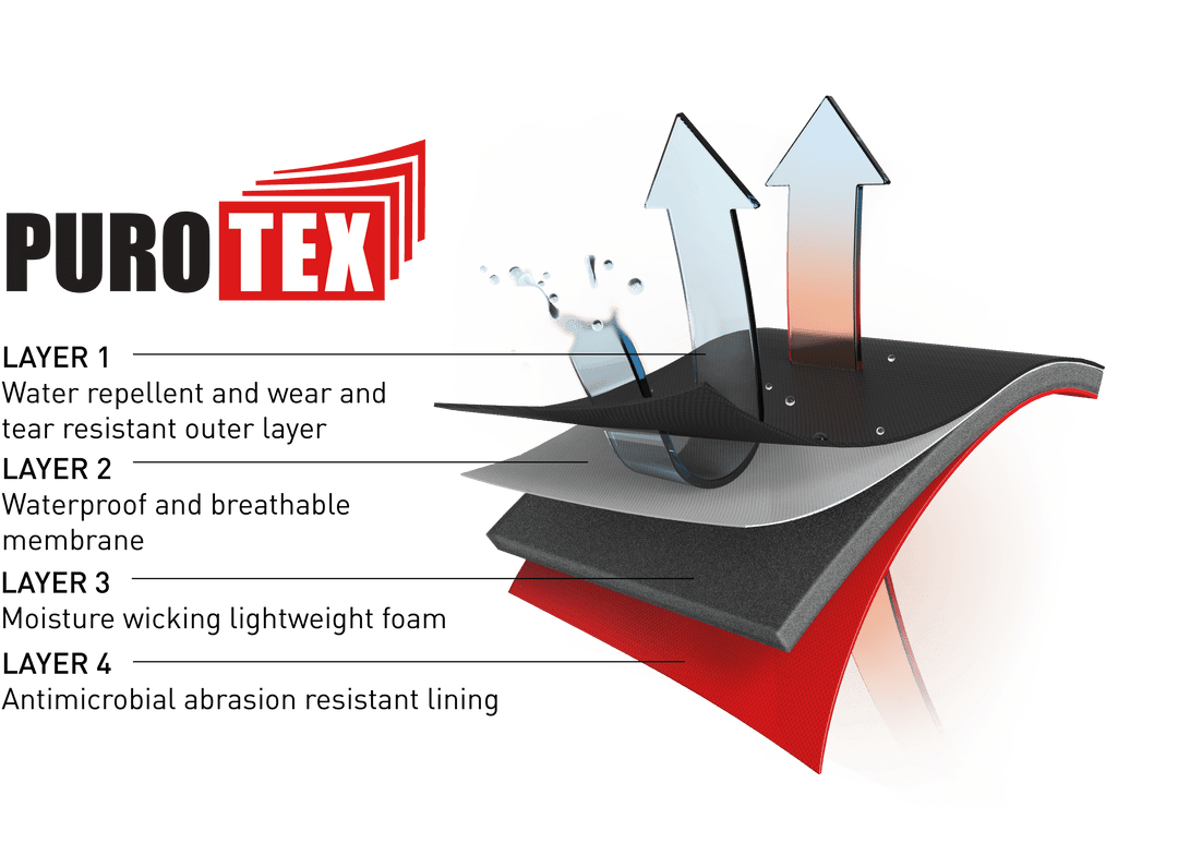 La Dunlop® Snugboot® es a la vez transpirable e impermeable, y está equipada con Purofort® para un confort duradero. El material Purotex® consiste en un sistema de cuatro capas con un recubrimiento exterior impermeable, resistente a la abrasión y resistente al desgarro. Así que pruébate la SnugBoot® y prepárate para no volver a usar ninguna otra.